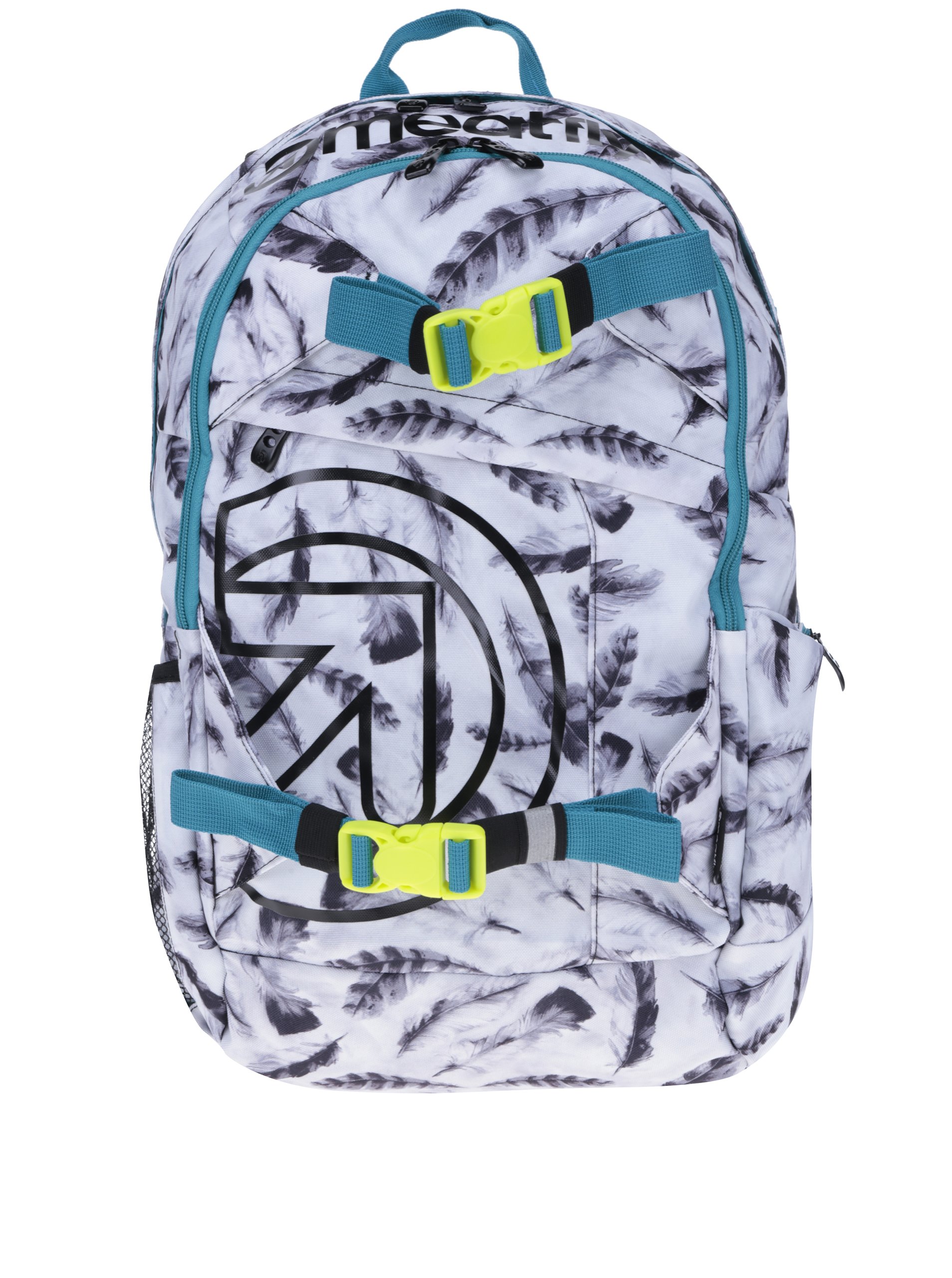 Meatfly. To je klasické zpracování ve sportovním duchu. S originálním bonusem ve formě neotřelých detailů a prvků s nádechem návykového adrenalinu. A to se jen tak nevidí. Typ: dámský batoh Barva: bílá, černá, šedá, petrolejová, neonově žlutá Vzor a potisk: pírka a logo Zapínání: dvoucestný zip a zipy a plastové přezky Úložný prostor: – hlavní úložný prostor (20 l) – vnitřní kapsa na 13,3” notebook – vnitřní kapsa na zip s materiálem proti oděru (vhodné pro úschovu brýlí či telefonu) – druhý přední úložný prostor na zip, se čtyřmi pořadovými kapsami – menší kapsa na zip přístupná z vnější přední strany – boční kapsy – jedna síťovaná, jedna na zip – skrytá kapsa na zip přístupná z boku Ergonomické vychytávky: – tvarovaná a polstrovaná záda se síťovinou pro lepší ventilaci – polstrované ramenní popruhy Materiál : 100 % polyester Vlastnosti materiálu: pevný, odolný, stálobarevný Údržba: v ruce Něco praktického: popruhy s plastovými přezkami na čelní