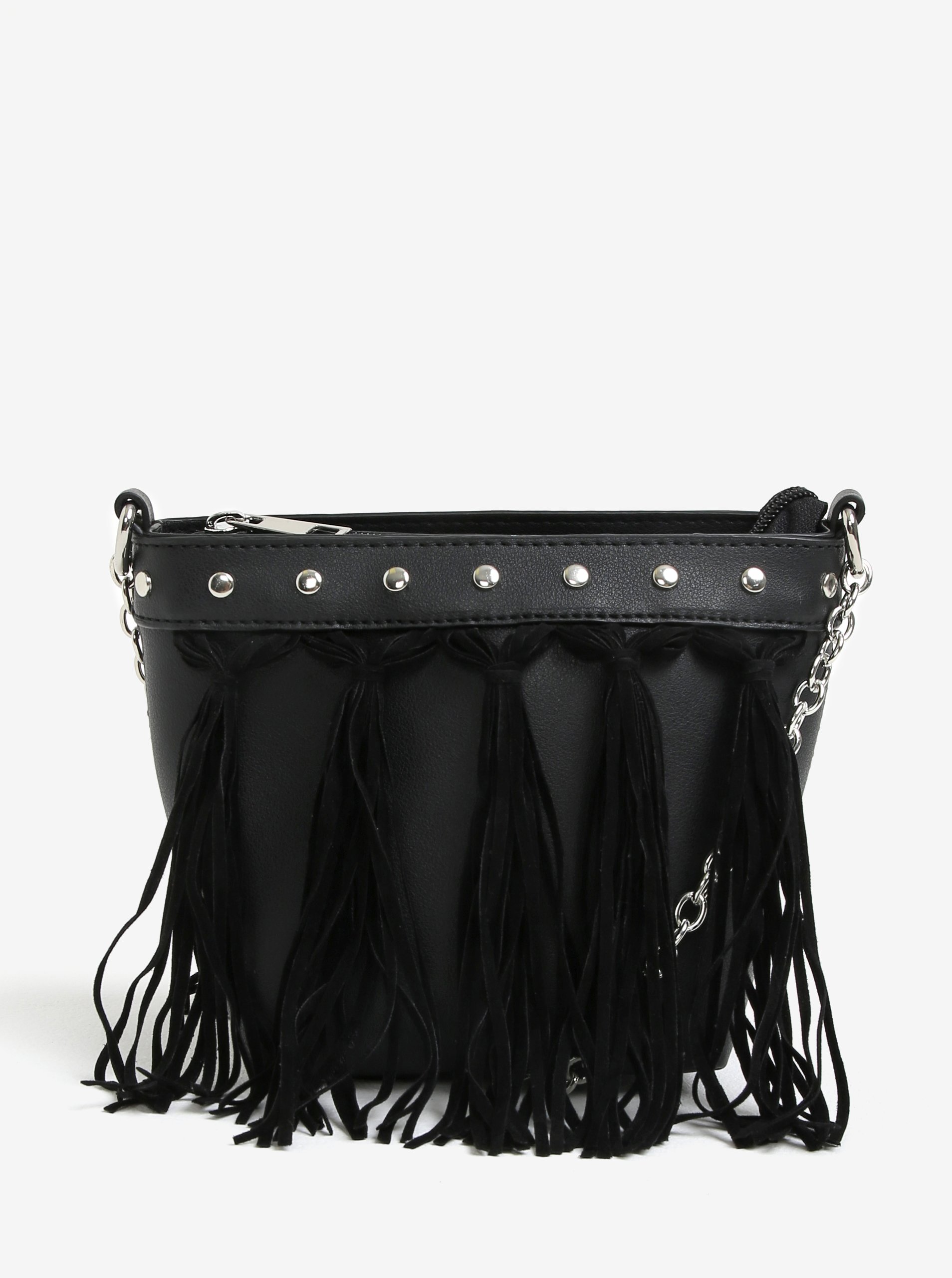 Černá crossbody kabelka s třásněmi Miss Selfridge