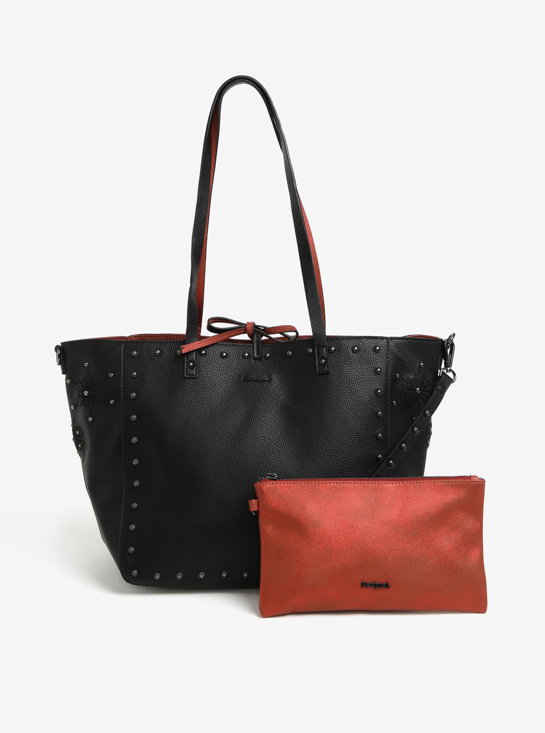 Černo-cihlový oboustranný shopper s psaníčkem 2v1 Desigual Portland