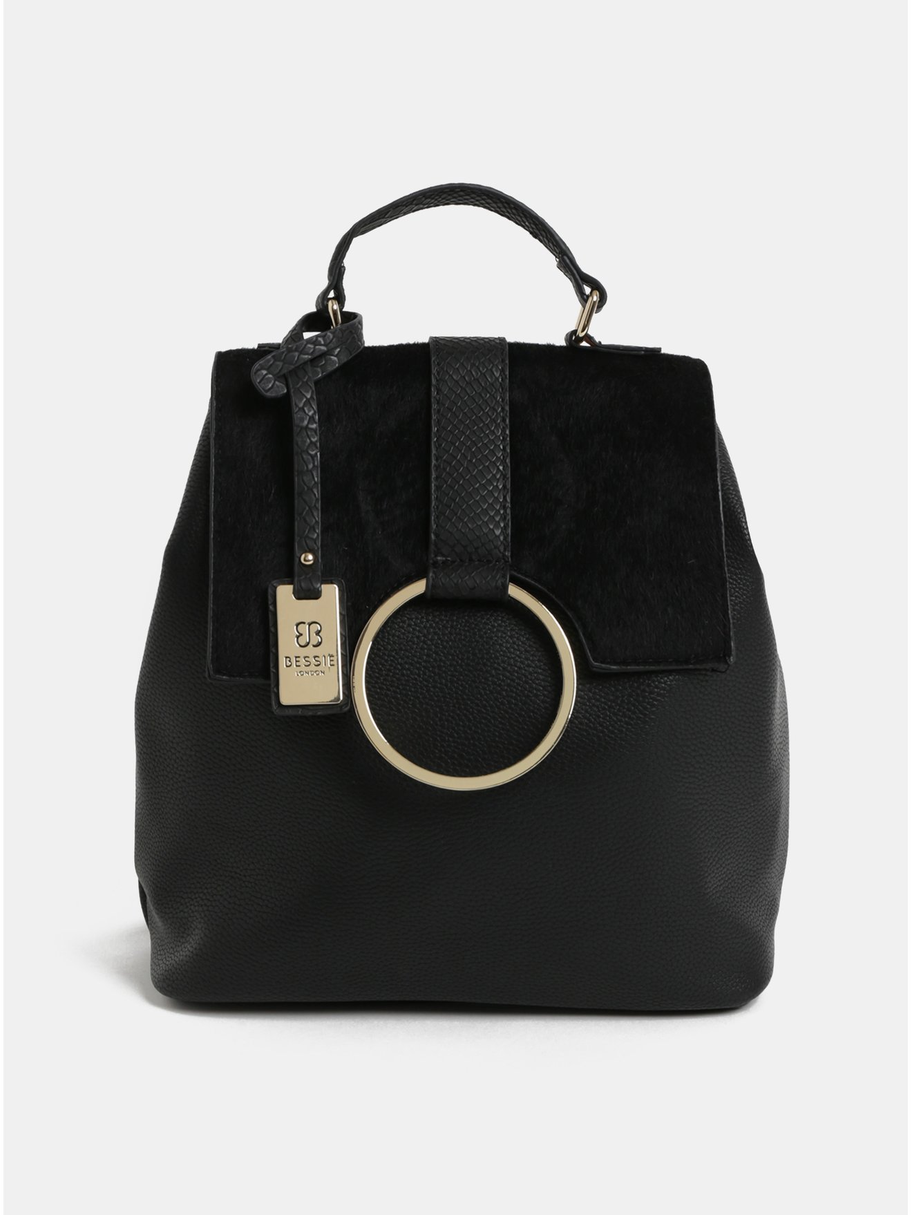 Černý batoh s umělým kožíškem a detaily ve zlaté barvě Bessie London