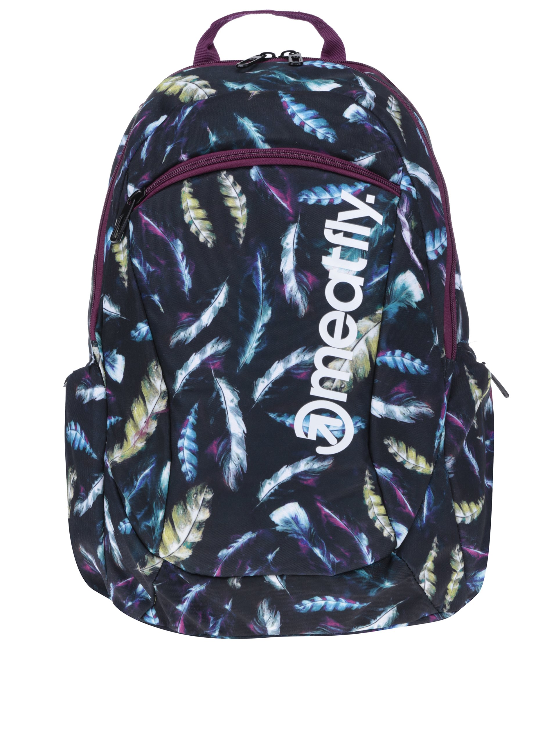 Jste v jednom kuse v jednom kole, zbožňujete pohyb a adrenalin? A od svého budoucího batohu očekáváte maximální funkčnost a spolehlivost, vkusný sportovní design, neotřelé detaily a praktické vychytávky? Tadá! Zde je. Batoh vašich snů od Meatfly. Typ: dámský vzorovaný batoh Barva: černá, zelená, modrá, vínová, fialová Vzor a potisk: pírka a logo Zapínání: dvoucestný zip Úložný prostor: – hlavní úložný prostor (26 l) – polstrovaná kapsa se suchým zipem na 13,3” notebook – druhý (zadní) oddělený úložný prostor na zip – menší kapsa na zip s celkem osmi pořadovými kapsami (přístupná z přední strany) – dvě menší vnější boční kapsy na zip Ergonomické vychytávky: – tvarovaná a polstrovaná záda se síťovinou pro lepší ventilaci – polstrované ramenní popruhy Materiál : 100 % polyester Vlastnosti materiálu: pevný, odolný, stálobarevný Údržba: v ruce Něco praktického: reflexní přívěsek Rozměry: velikost batohu – 48 x 33