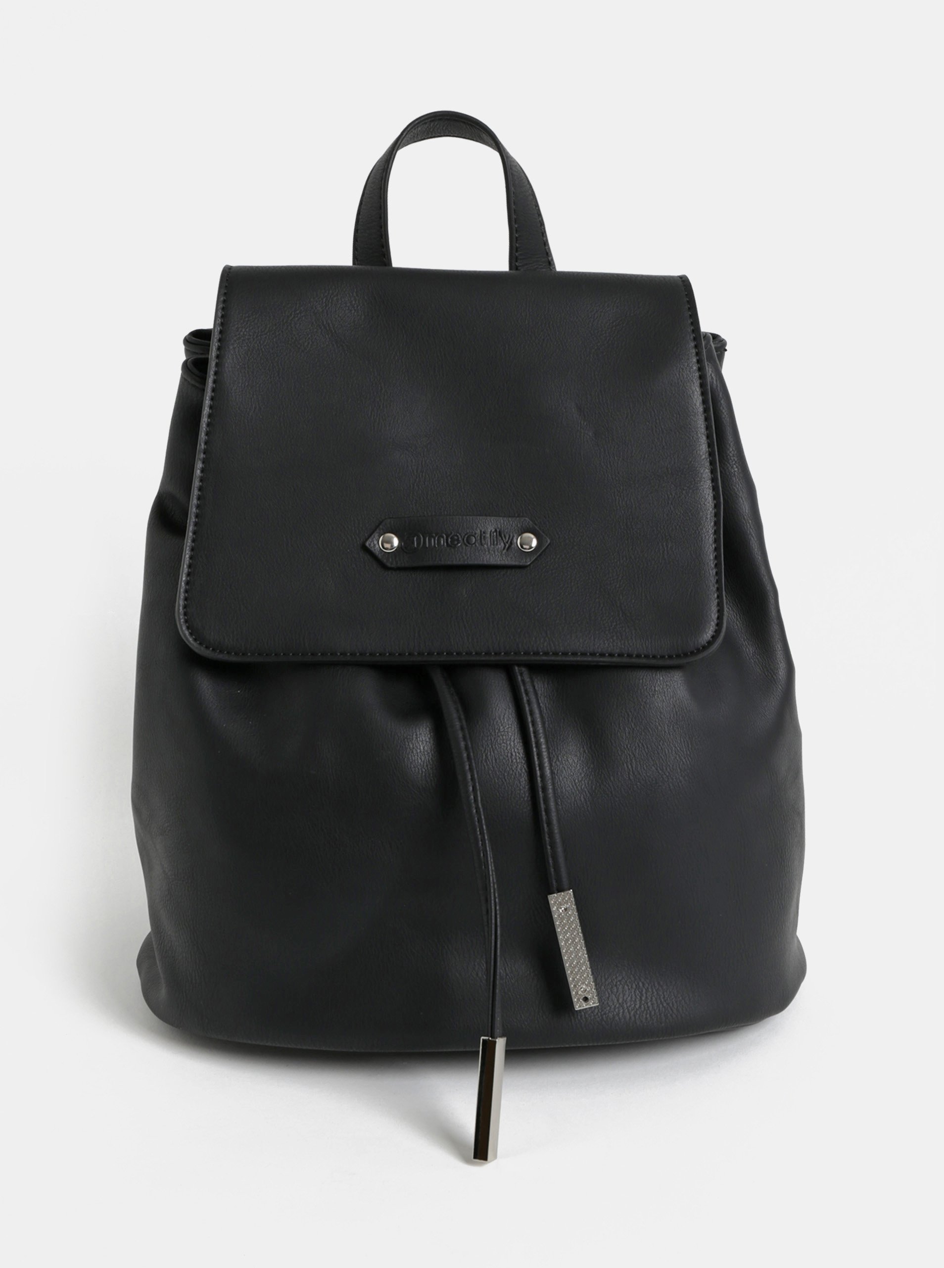 Typ: dámský vakový batoh s klopou Barva: černá Zapínání: stahování, magnet Úložný prostor: jeden hlavní s jednou vnitřní kapsou na zip a dvěma volnými Materiál: vnější – 100 % polyuretan Údržba: otřít vlhkým hadříkem Rozměry: kabelka – 28 x 28 x 15 cm výška ucha – 8 cm formát A4 – vejde se max. délka popruhů – 65 cm