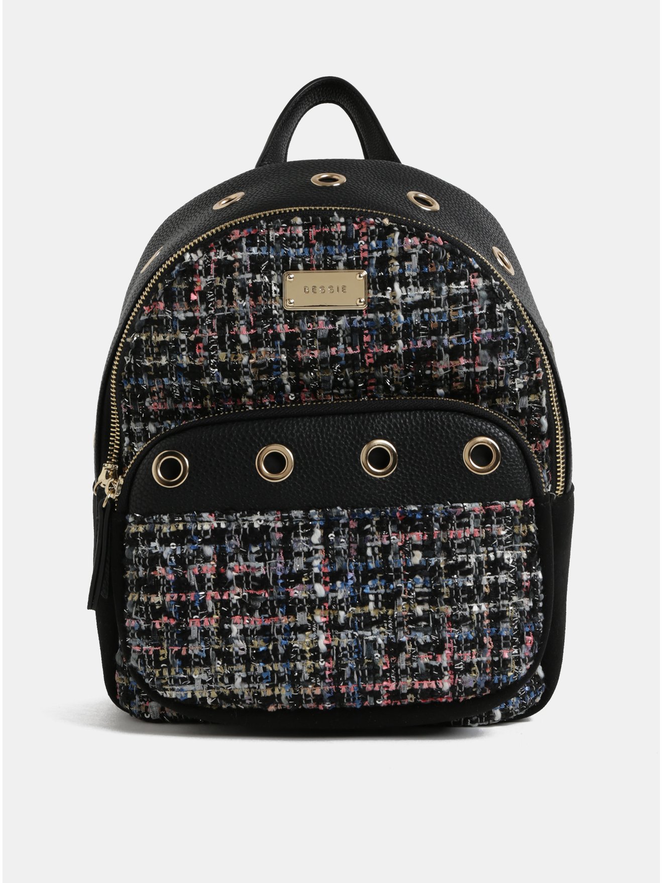 Černý vzorovaný batoh s detaily v semišové úpravě Bessie London