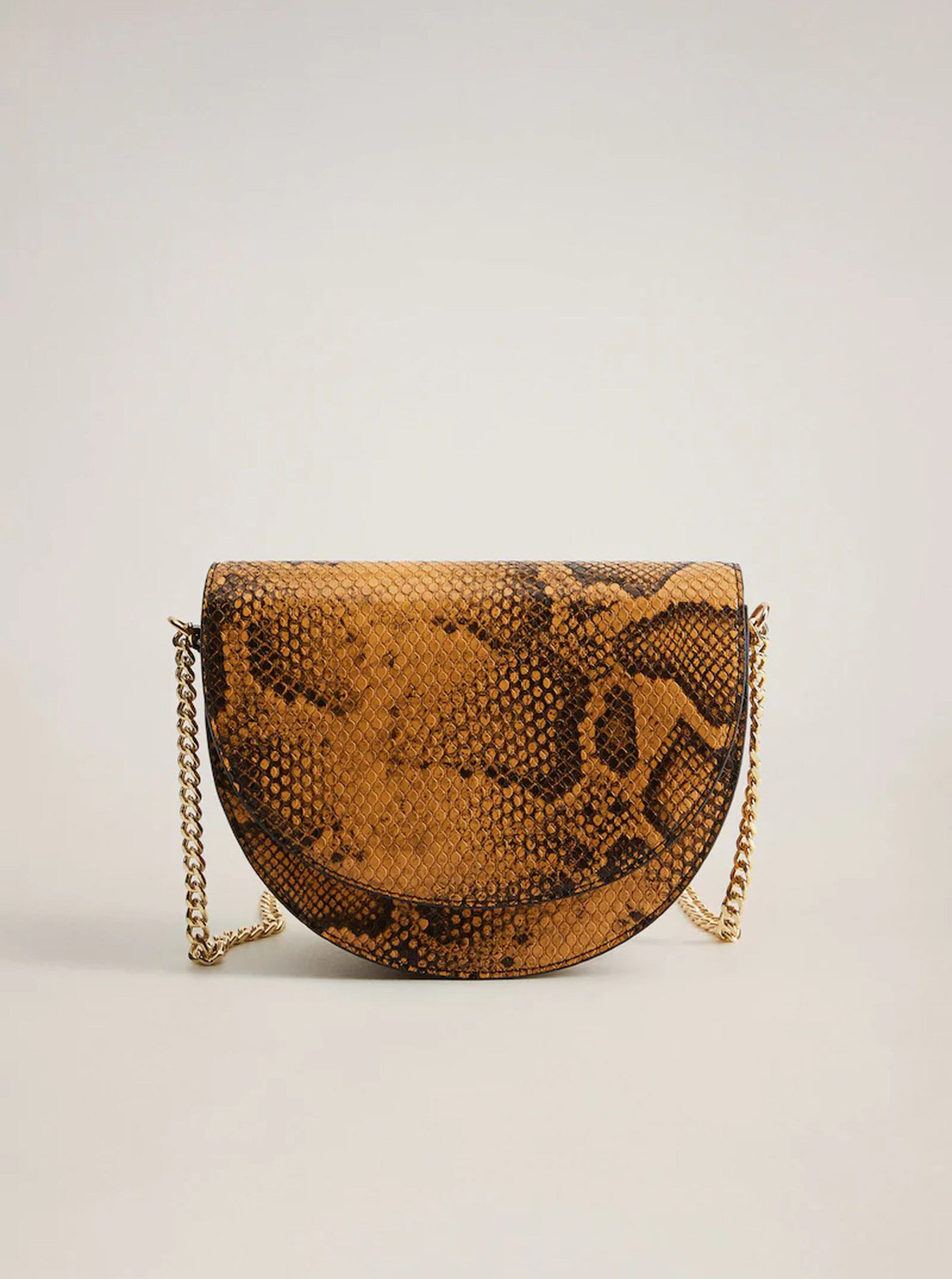 Hnědá crossbody kabelka s hadím vzorem Mango Caleo