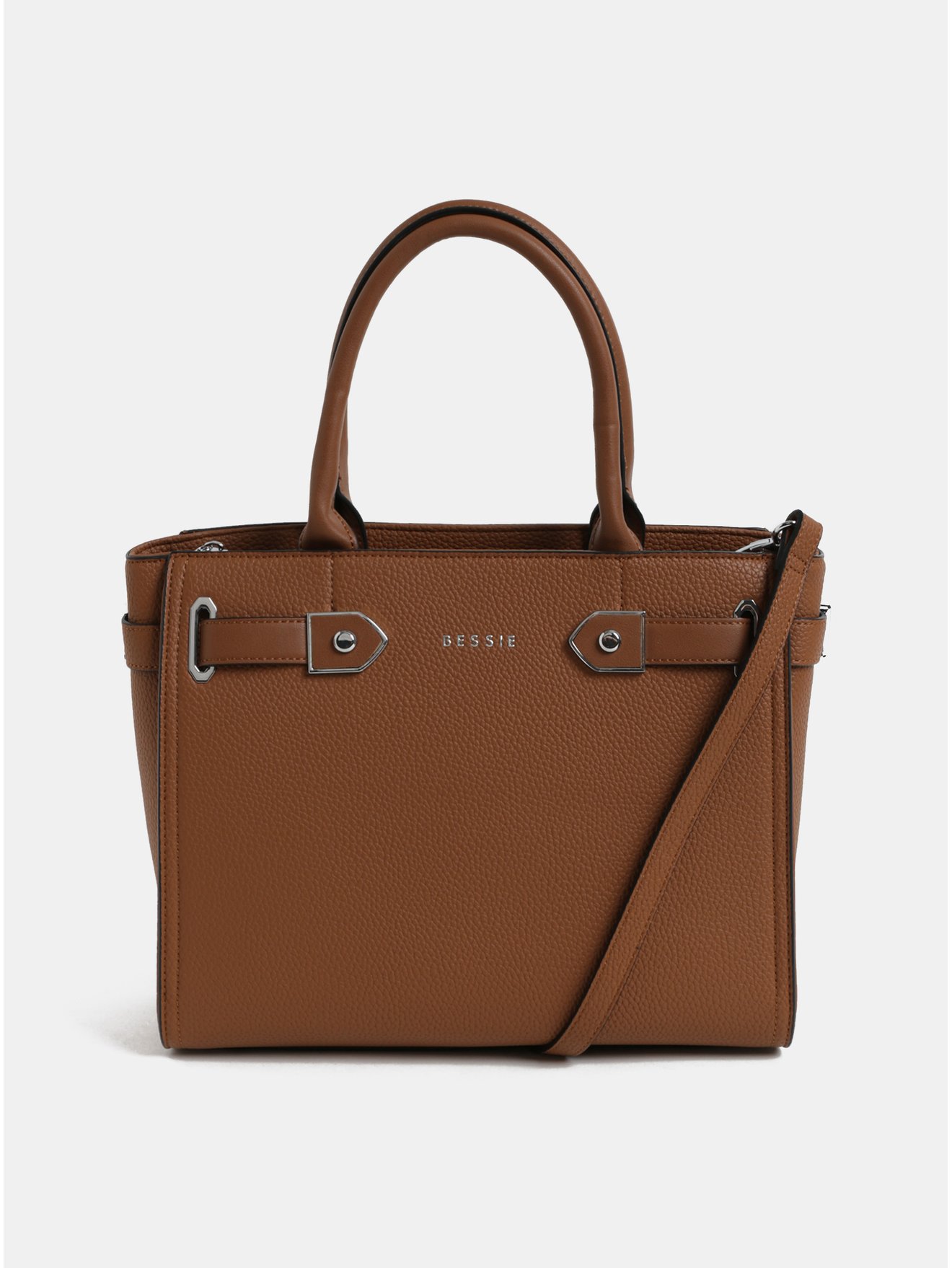 Hnědá kabelka s detaily ve stříbrné barvě Bessie London