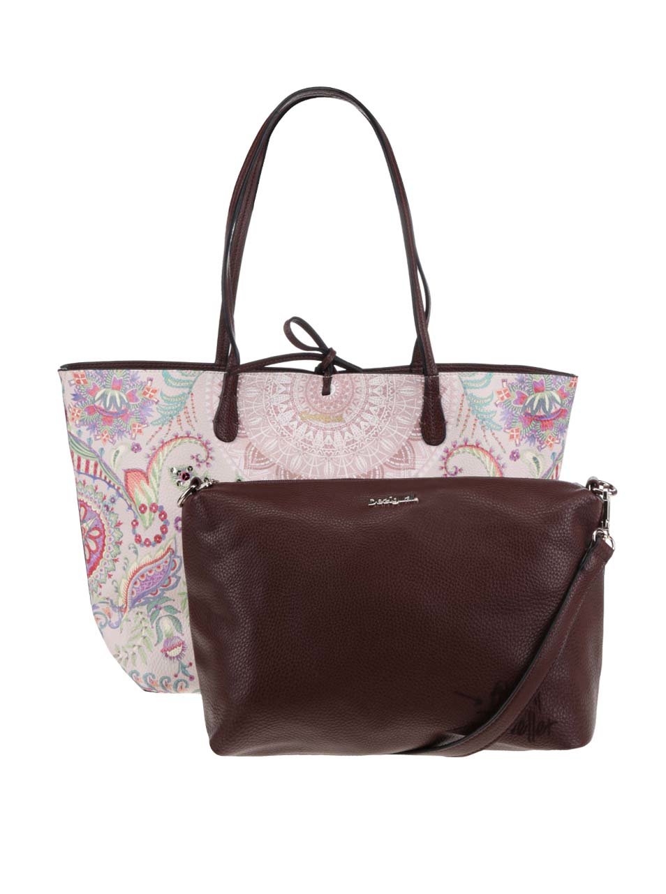 Hnědo-krémový oboustranný shopper 2v1 s barevným vzorem Desigual Valkiria Capri