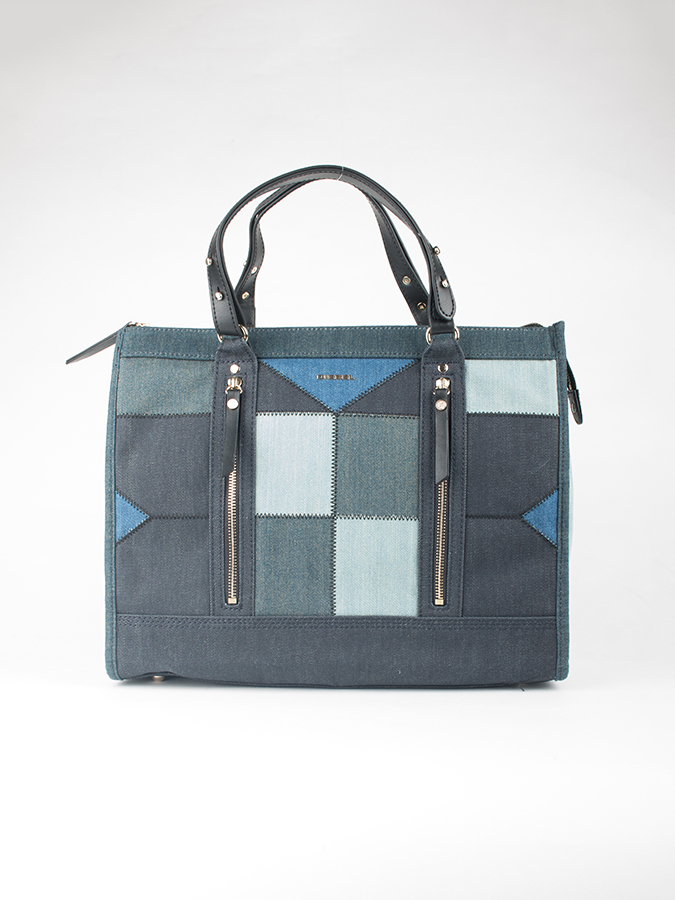 Kabelka Diesel De-Cennya – Handbag. Dámská stylová kabelka Diesel v denimovém designu se zlatými detaily. Kabelka se zapíná na zip. Uvnitř je kapsa na zip a logo značky. Kabelka má na přední straně mozaiku z různobarevných džínových kousků, dvě kapsišky na zip zdobené koženými poutky a logo značky. Má dvě ploché kožené uši do ruky. Dno je obdélníkové a vyztužené. Elegantní kabelka, která se hodí na jakoukoliv příležitost. Materiál: 90% Bavlna, 10% PVC
