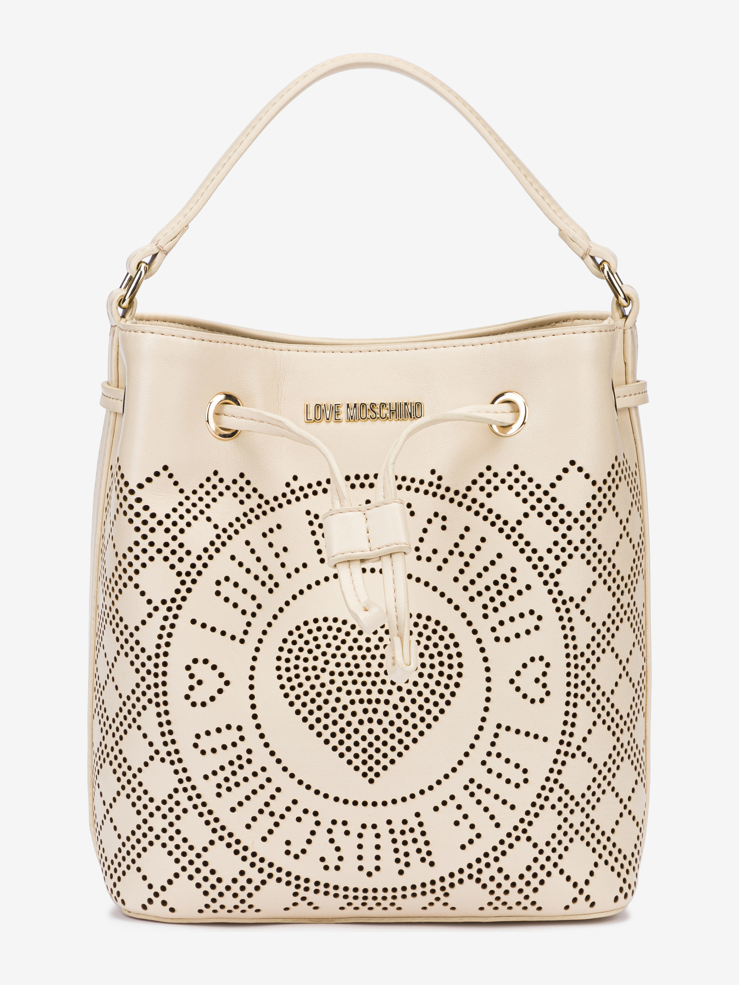 Materiál: 100% polyuretan Rozměry: 23x9x24 cm Výška ucha: 10 cm Délka popruhu: max. 115 cm Vzor: dírkovaný Zapínání: magnetické Barva: béžová Detail: kovové doplňky zlaté barvy