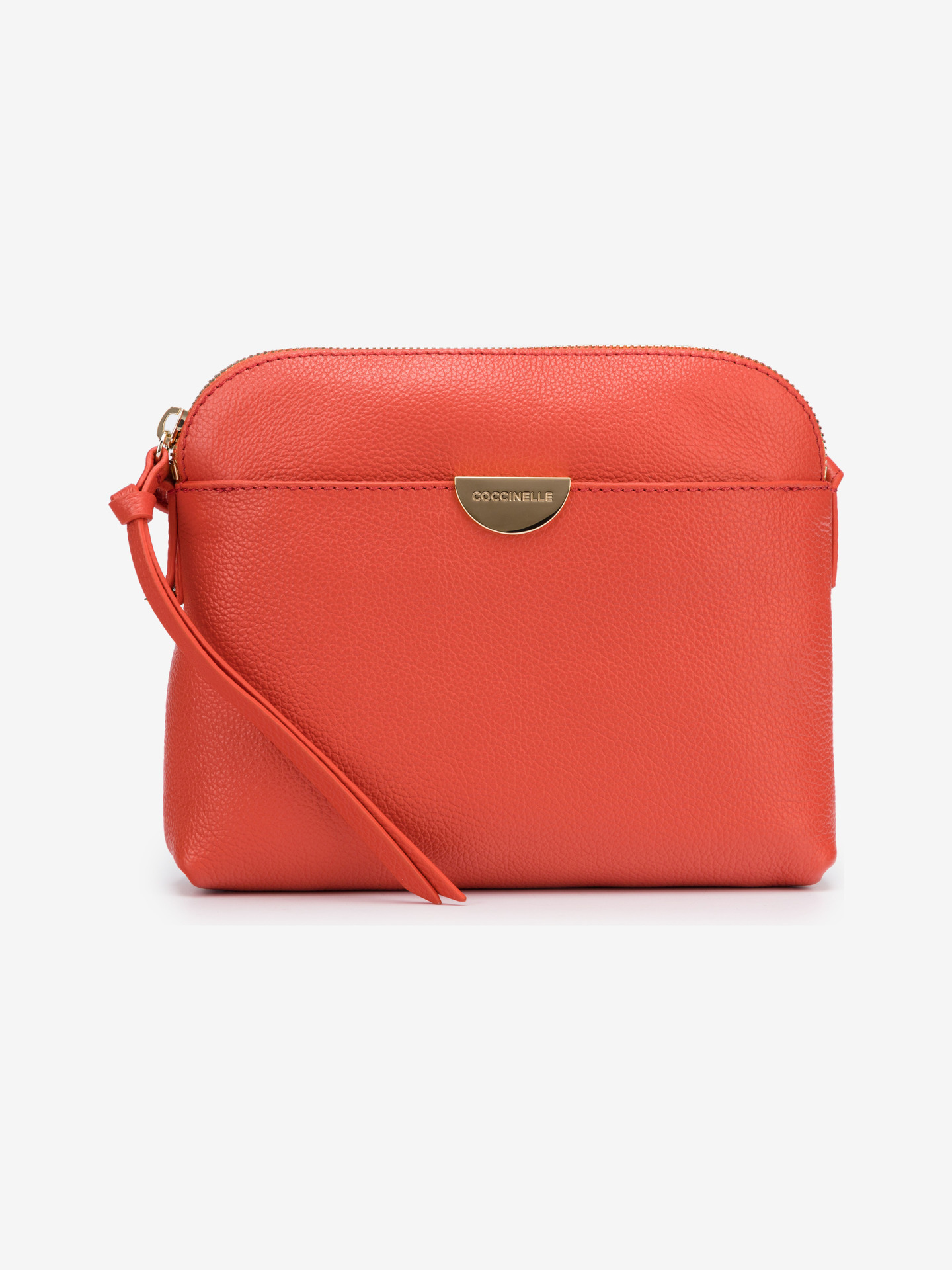 Materiál: 100% kůže Rozměry: 15×4,5×21 cm Délka popruhu: max. 108 cm Zapínání: na zip Barva: červená Detail: kovové doplňky zlaté barvy