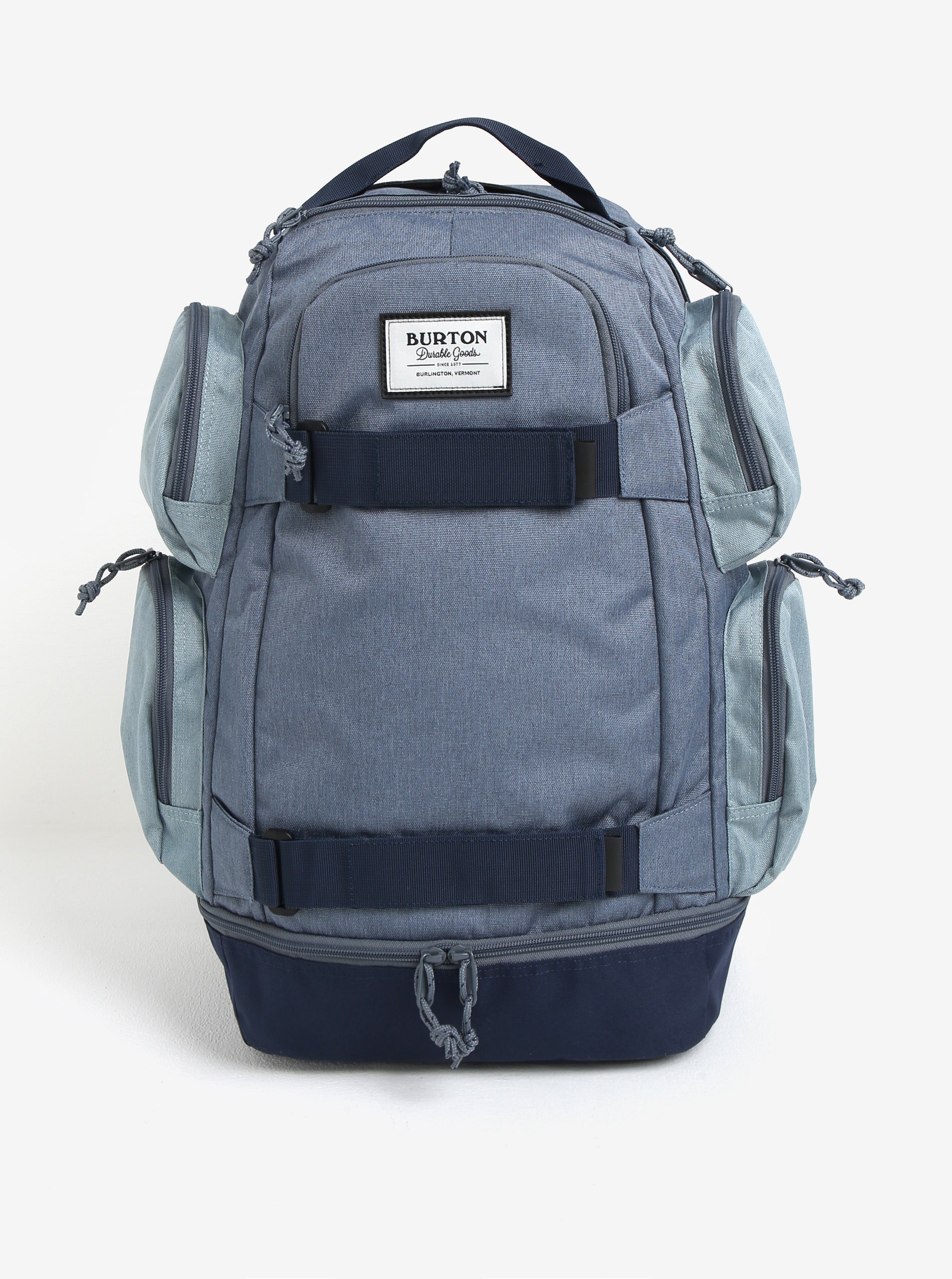 Burton . Nesmrtelná legenda s puncem absolutní kvality a výtečného stylu. Typ: unisex batoh s kapsou na notebook Barva: modrá Zapínání: zip Úložný prostor: – prostorná hlavní kapsa – uvnitř polstrovaná kapsa na 15″ notebook – vnější kapsa na zip s materiálem proti oděru přístupná shora (vhodné pro úschovu brýlí či telefonu) – pět vnějších kapes na zip – vnější kapsa přístupná zdola (vhodné pro úschovu bot) Ergonomické vychytávky: – ergonomicky tvarovaná polstrovaná záda a kapsa na notebook – polstrované ramenní popruhy s podélně a výškově nastavitelným bederním pásem – stahovací přední popruhy na suchý zip Materiál: 100 % polyester Vlastnosti materiálu: pevný, nemačkavý, stálobarevný, odolný Rozměry: batoh – 37 x 30 x 19 cm maximální délka ramenního popruhu – 85 cm formát A4 – vejde se