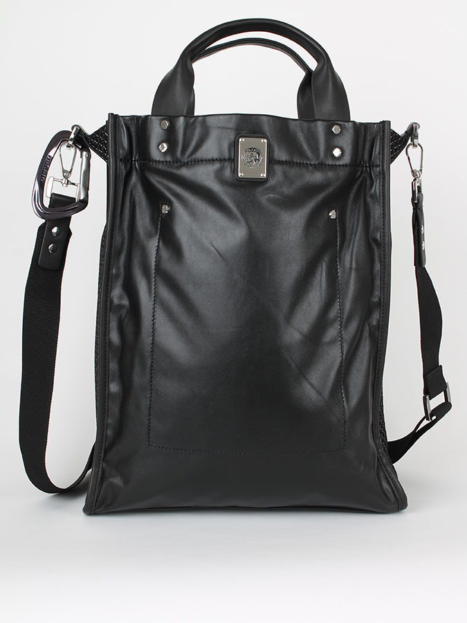 Taška Diesel z jemné kůže s ozdobnými kovovými doplňky a postraním siťovým materiálem má na předním díle kovové logo. Do této tašky se vám vejdou veškeré potřebné věci včetně notebooku. Dno tašky je kožené proti oděrům, stejně tak i uši do ruky. Na bočních stranách je na karabinky přidělaný textilní pásek na rameno. Rozměry: 33 x 40cm.