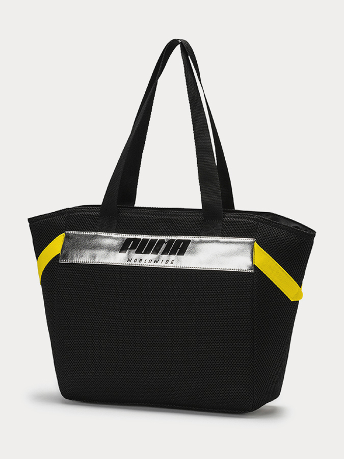 Taška Puma Prime Street Large Shopper Black-Bl. Dámská taška černé barvy má viditelné logo Puma na přední straně. Žluté prvky podtrhují dokonalost celého designu. Dlouhá ucha umožňují pohodlný přenos tašky na rameni. Hlavní kapsa je uzavíratelná zipem. Uvnitř je malá kapsička na zip ideální pro úschovu důležitých věcí. Materiál: 90% Polyester 10% Polyuretan