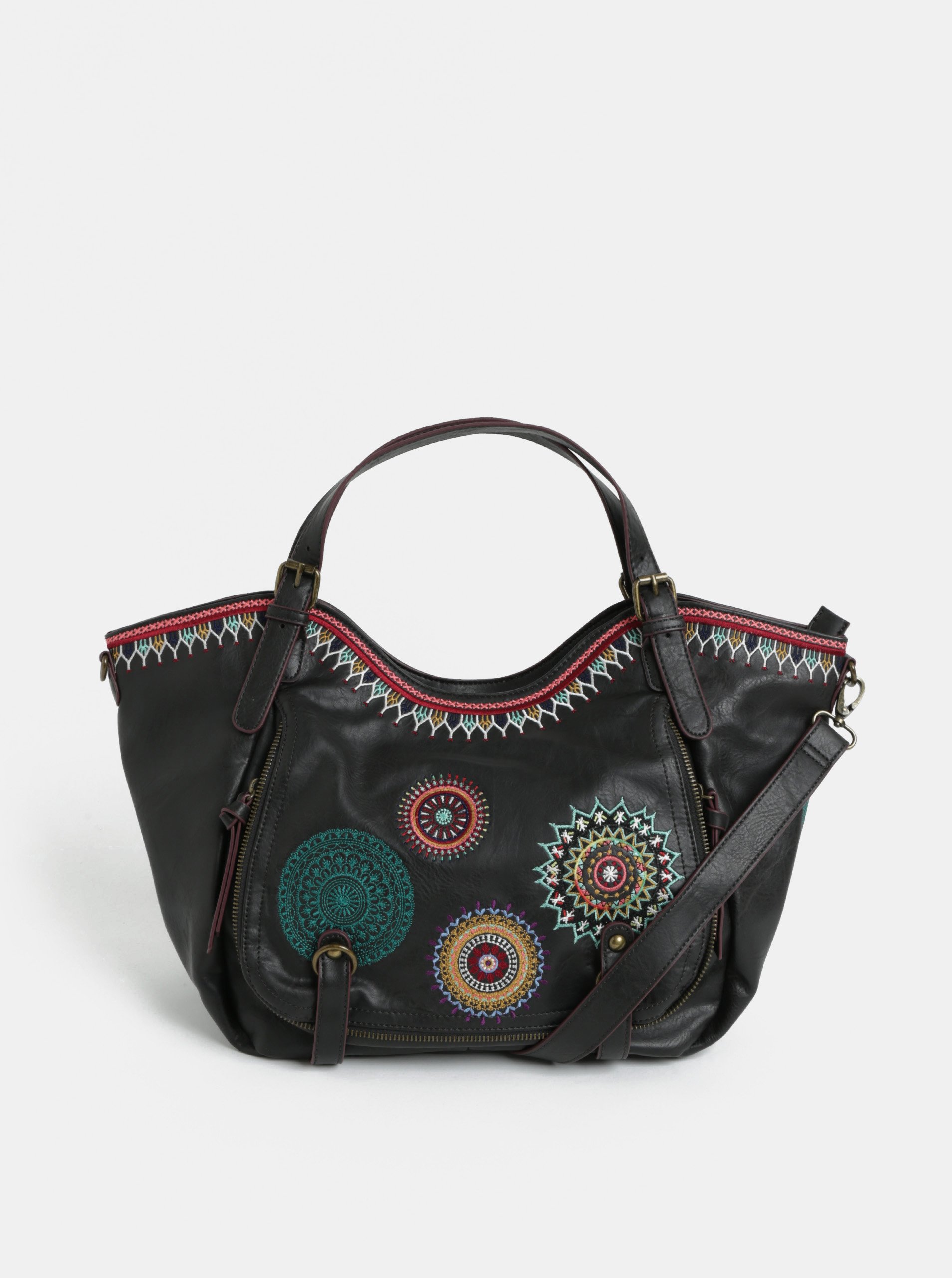 Tmavě hnědá prošívaná kabelka s ornamenty Desigual Siara