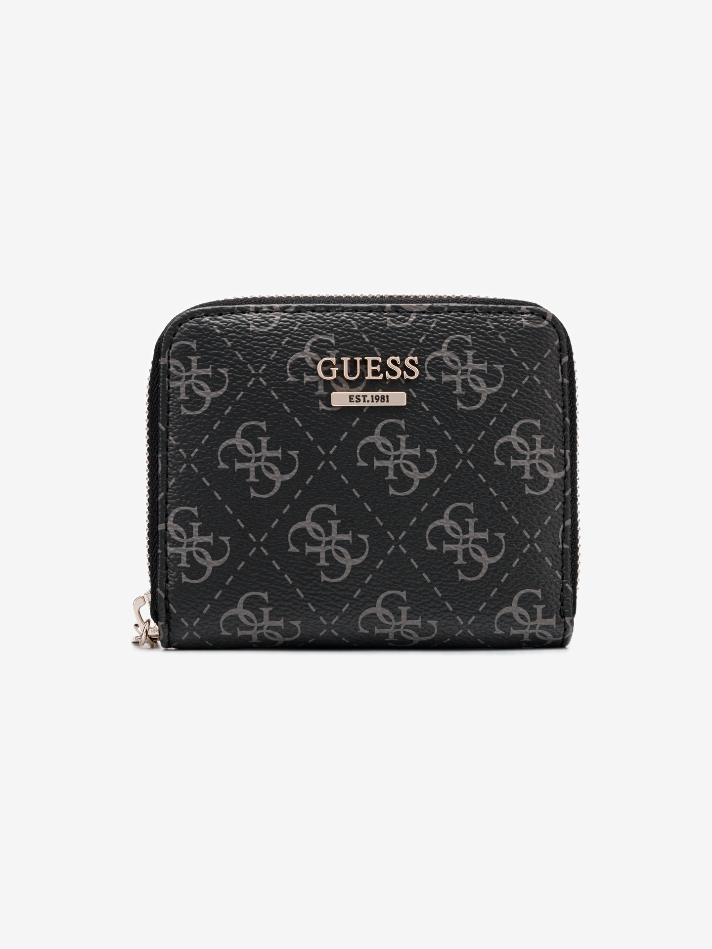 Materiál: 100% polyuretan Rozměry: 10x2x11 cm Vzor: logo Zapínání: na zip Barva: černá Detail: kovové doplňky zlaté barvy