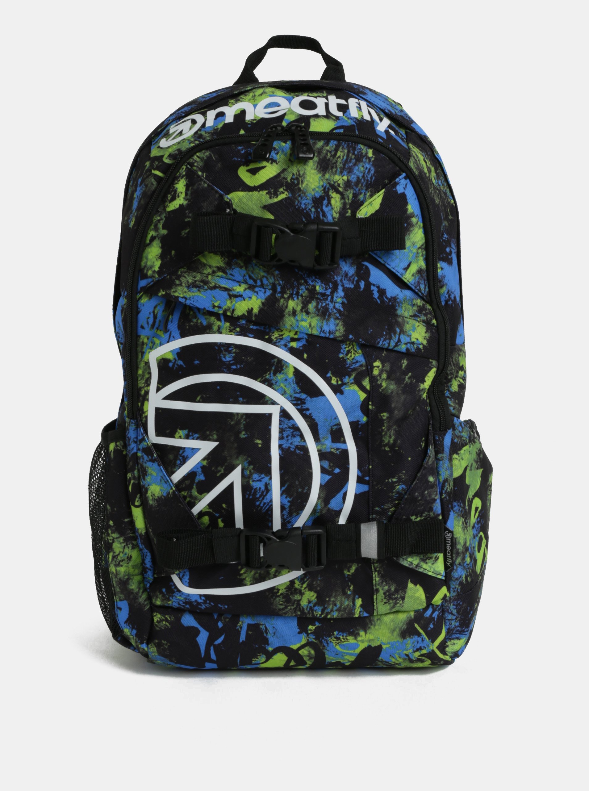 Typ: pánský vzorovaný batoh Barva: černá, zelená, bílá Vzor a potisk: abstraktní a logo Zapínání: dvoucestný zip a zipy a plastové přezky Úložný prostor: – hlavní úložný prostor (20 l) – vnitřní kapsa na 13,3” notebook – vnitřní kapsa na zip s materiálem proti oděru (vhodné pro úschovu brýlí či telefonu) – druhý přední úložný prostor na zip, se čtyřmi pořadovými kapsami – menší kapsa na zip přístupná z vnější přední strany – boční kapsy – jedna síťovaná, jedna na zip – skrytá kapsa na zip přístupná z boku Ergonomické vychytávky: – tvarovaná a polstrovaná záda se síťovinou pro lepší ventilaci – polstrované ramenní popruhy Materiál: 100 % polyester Vlastnosti materiálu: pevný, odolný, stálobarevný Údržba: v ruce Něco praktického: popruhy s plastovými přezkami na čelní straně batohu (na skateboard) – reflexní prvky na popruhu čelní strany a na bederním popruhu Rozměry: velikost batohu – 48 x 30 x 23 cm formát A4 – vejde se velikost kapsy na notebook –